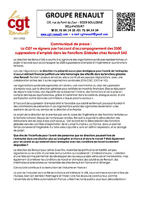 Le 16 novembre, la direction soumet un accord à signature. Les syndicats CGT Renault interrogent leurs syndiqués sur la signature ou non de cet accord.