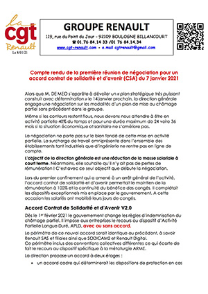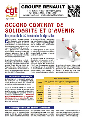 Lors de la première séance de négociation d'un nouvel "accord de solidarité et d'avenir" - CSA -, le 7 janvier, la CGT a revendiqué :