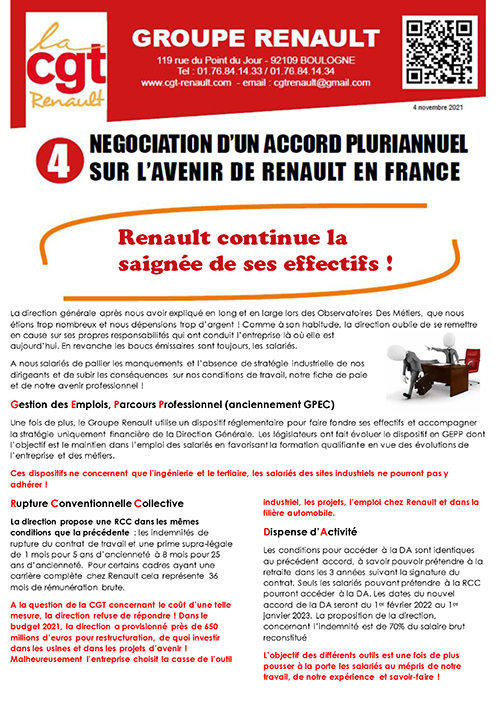 Les 19, 20 et 21 octobre les organisation syndicales centrales étaient convoquées pour les observatoires des métiers. Ces réunion consiste à présenter pour chaque famille de métiers de l'ingénierie et du tertiaire la situation de l'emploi et ce que la direction envisage pour les années à venir. Notre direction a une conception étonnante de la possibilité du "savoir concevoir un véhicule" par l'ingénierie française.