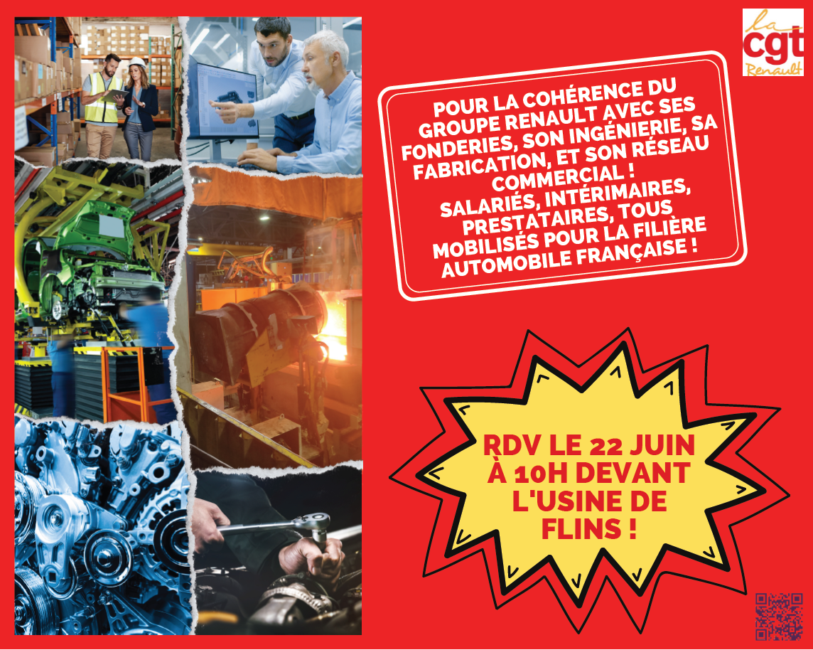 Mardi 22 juin, malgré le temps et les manœuvres de la direction qui a fait bloquer l'entrée du site par la police, une délégation du Technocentre est allée soutenir les travailleurs de Flins et l'avenir de leurs emplois.