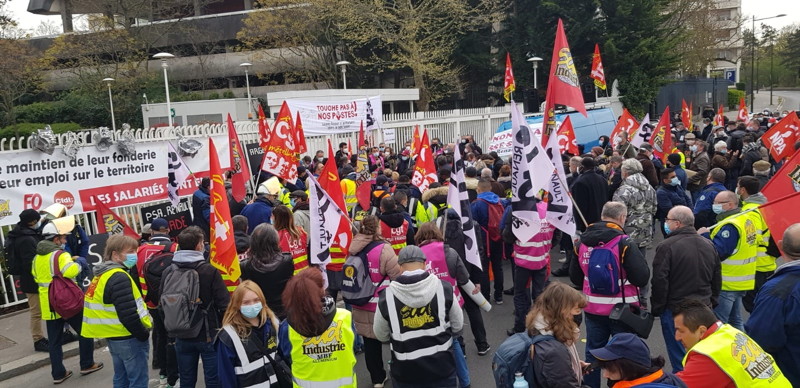 Il y ont retrouvé les salariés de la Fonderie MBF du Jura, dont l’avenir est menacé et qui dépend des commandes de PSA et de Renault, ainsi que des soutiens des usines Renault de Flins, du Mans et de Cléon, de la CGT-TUI et d’autres syndicats.