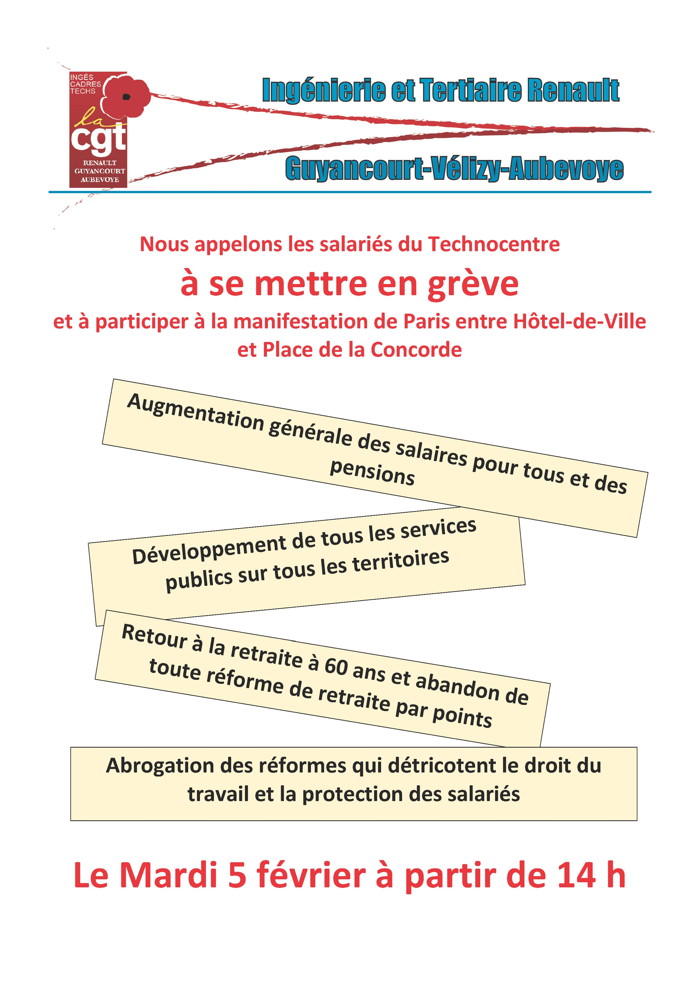 Au-delà de l’affaire Ghosn, les 29 janvier et 15 février la direction générale doit concéder de réelles AGS pour les salariés Renault